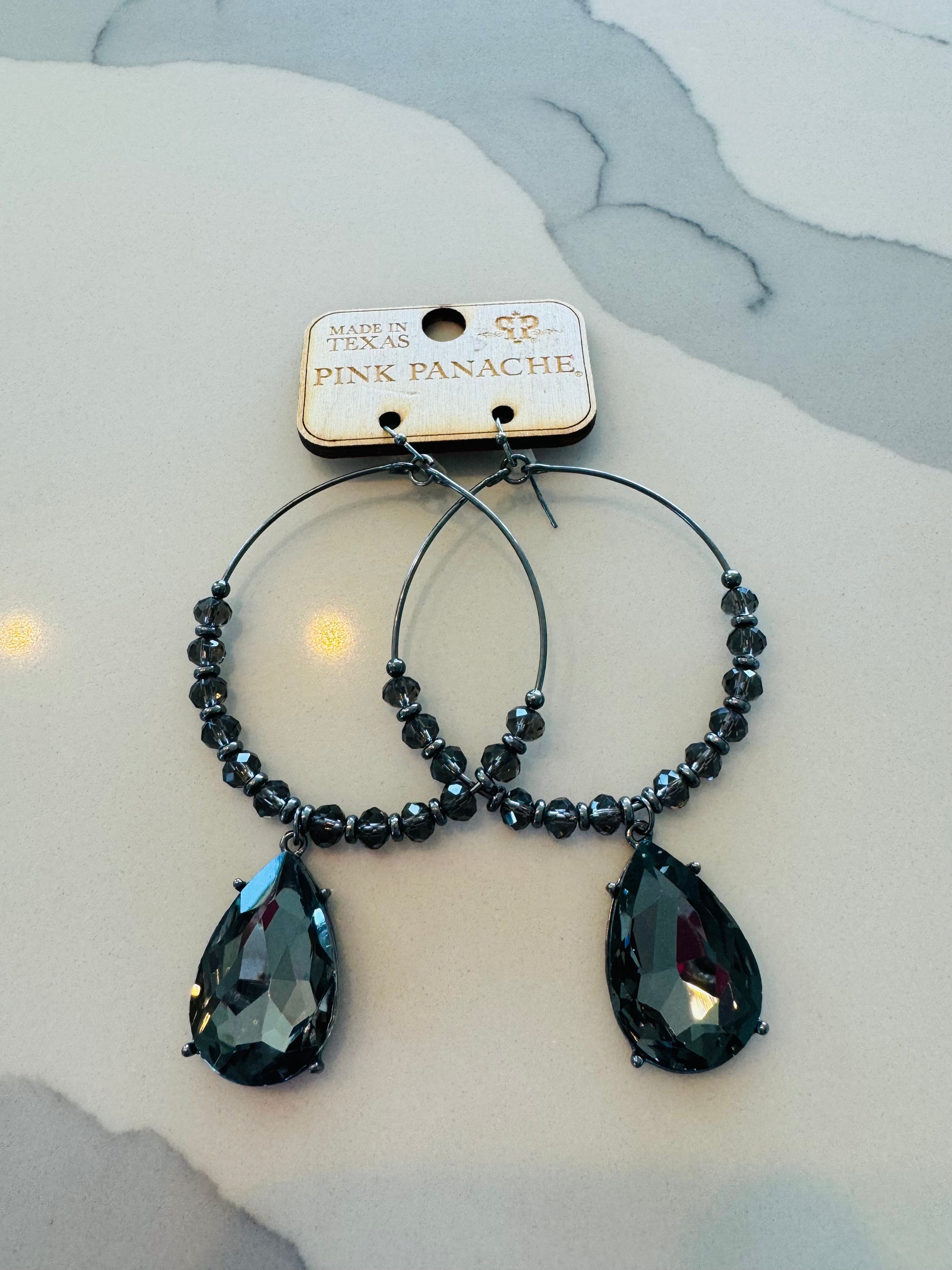 Indulge in the opulent world of our Black Diamond Hoop Earrings. Featuring a dazzling combination of statement black crystals and a large teardrop crystal, these luxurious earrings will elevate any outfit to new heights. A true statement piece, perfect for those seeking to make a bold and sophisticated impression.