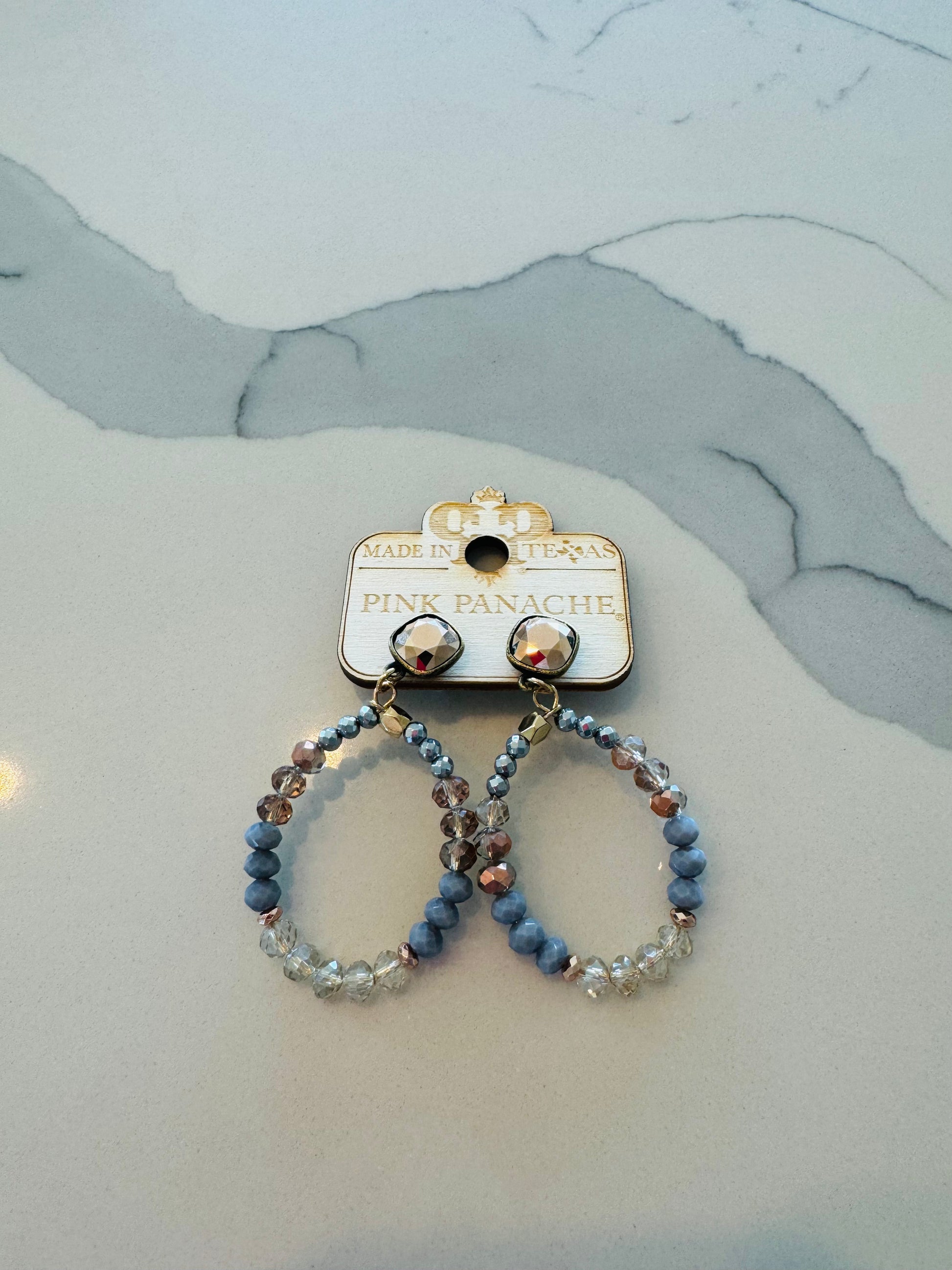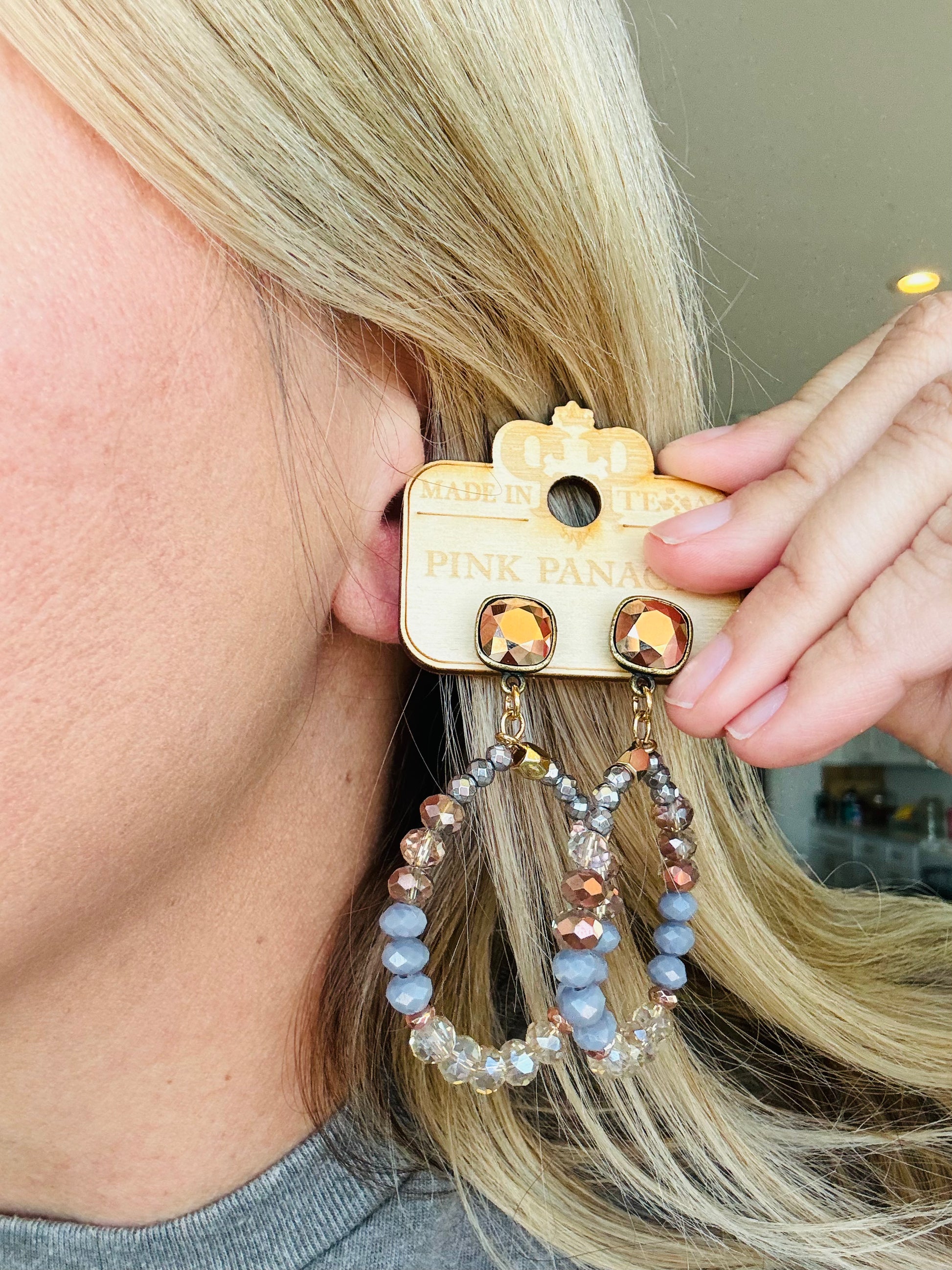 Add a touch of sparkle to your fall wardrobe with our beautiful Blue and Brown Beaded Earrings! These stunning earrings feature a mix of blue, brown, silver and gold beads, and a sparkly brown stud. Perfect for transitioning from summer to fall. Elevate your style with these statement earrings!