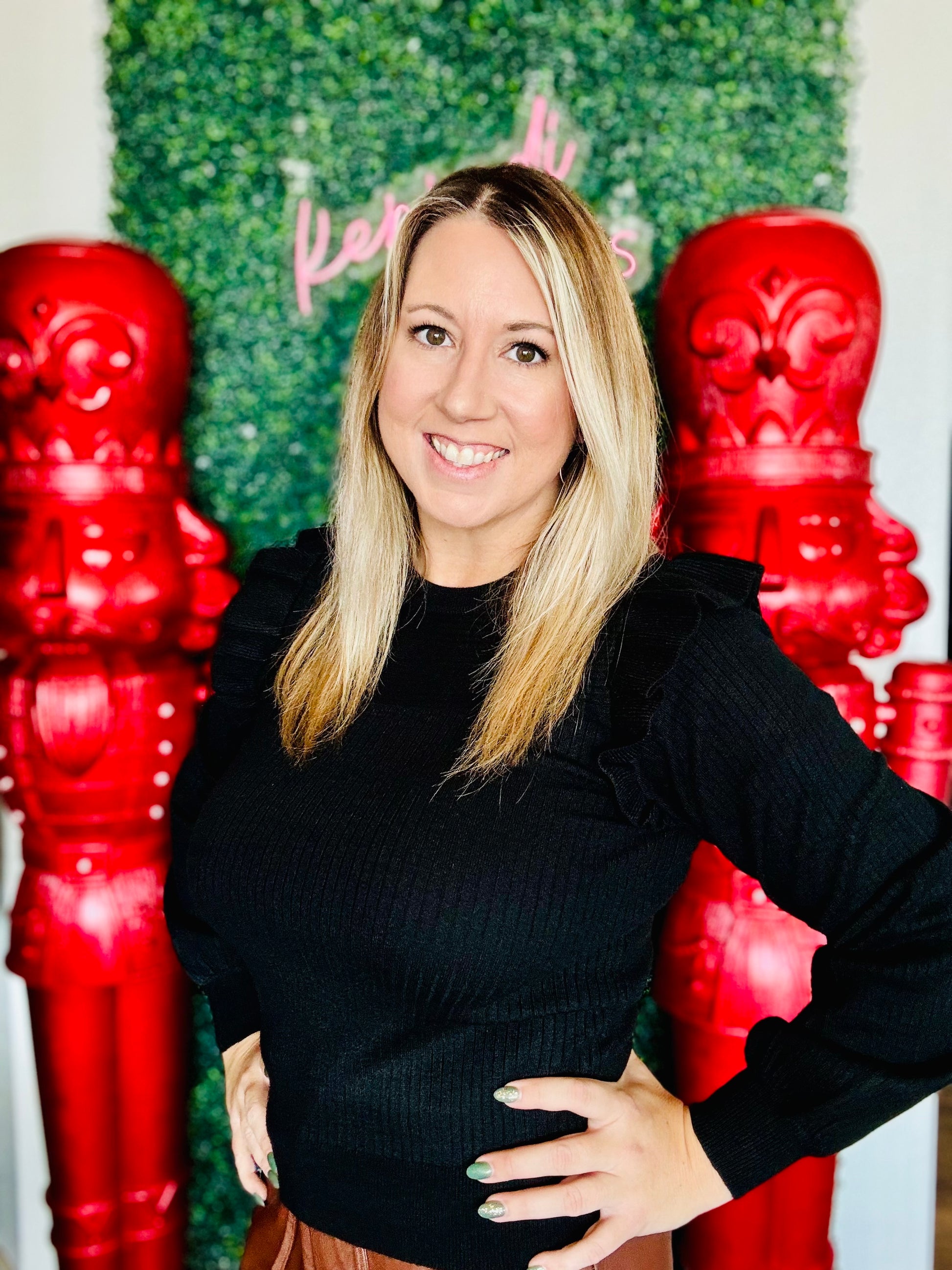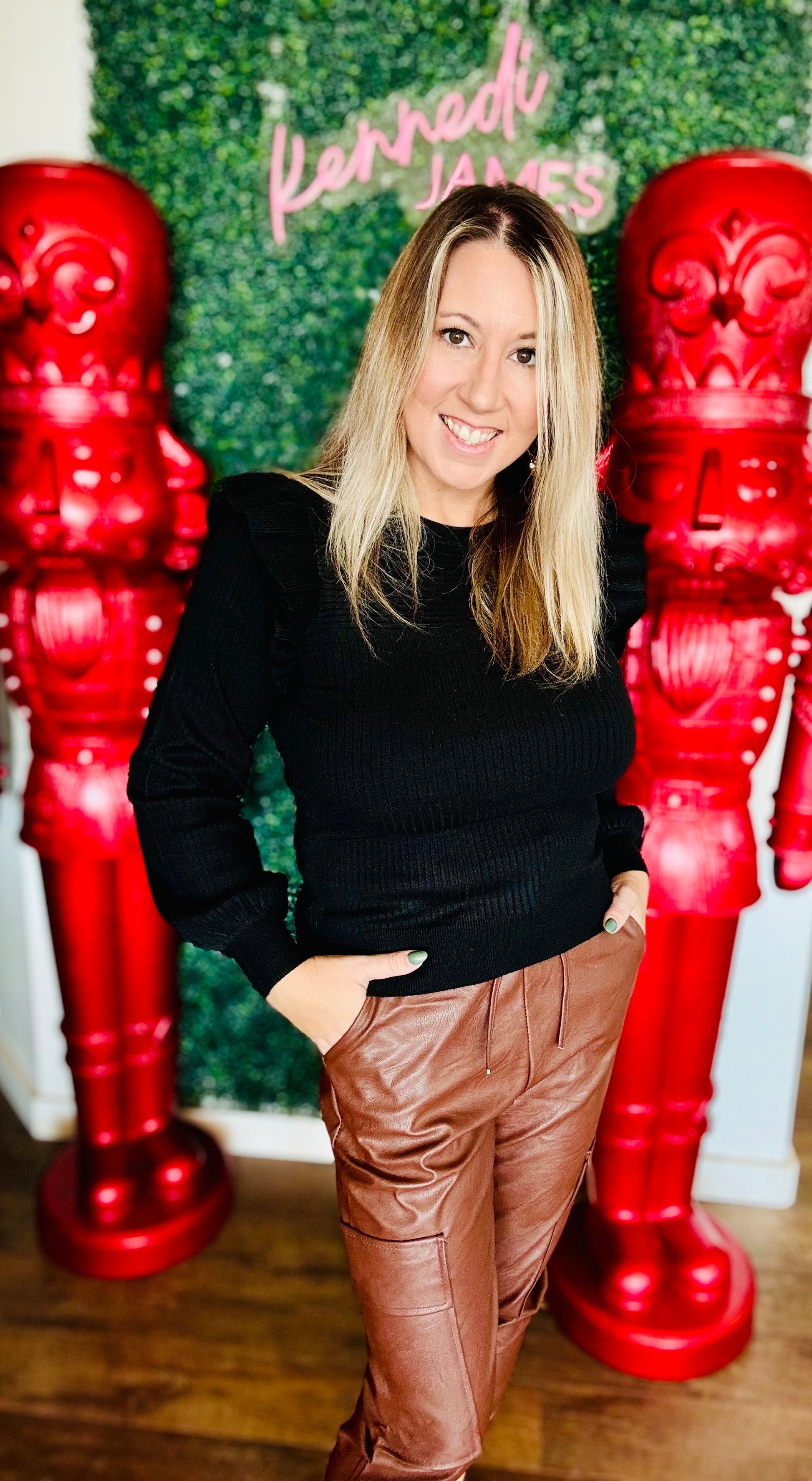 This season-essential Brooke Ruffled Black Sweater is an elevated take on timeless style. The thoughtful shoulder ruffle detail adds just the right amount of sophistication, bringing to life a classic, yet modern design. The fine attention to detail and slight balloon sleeve makes this garment as flexible as it is fashionable.