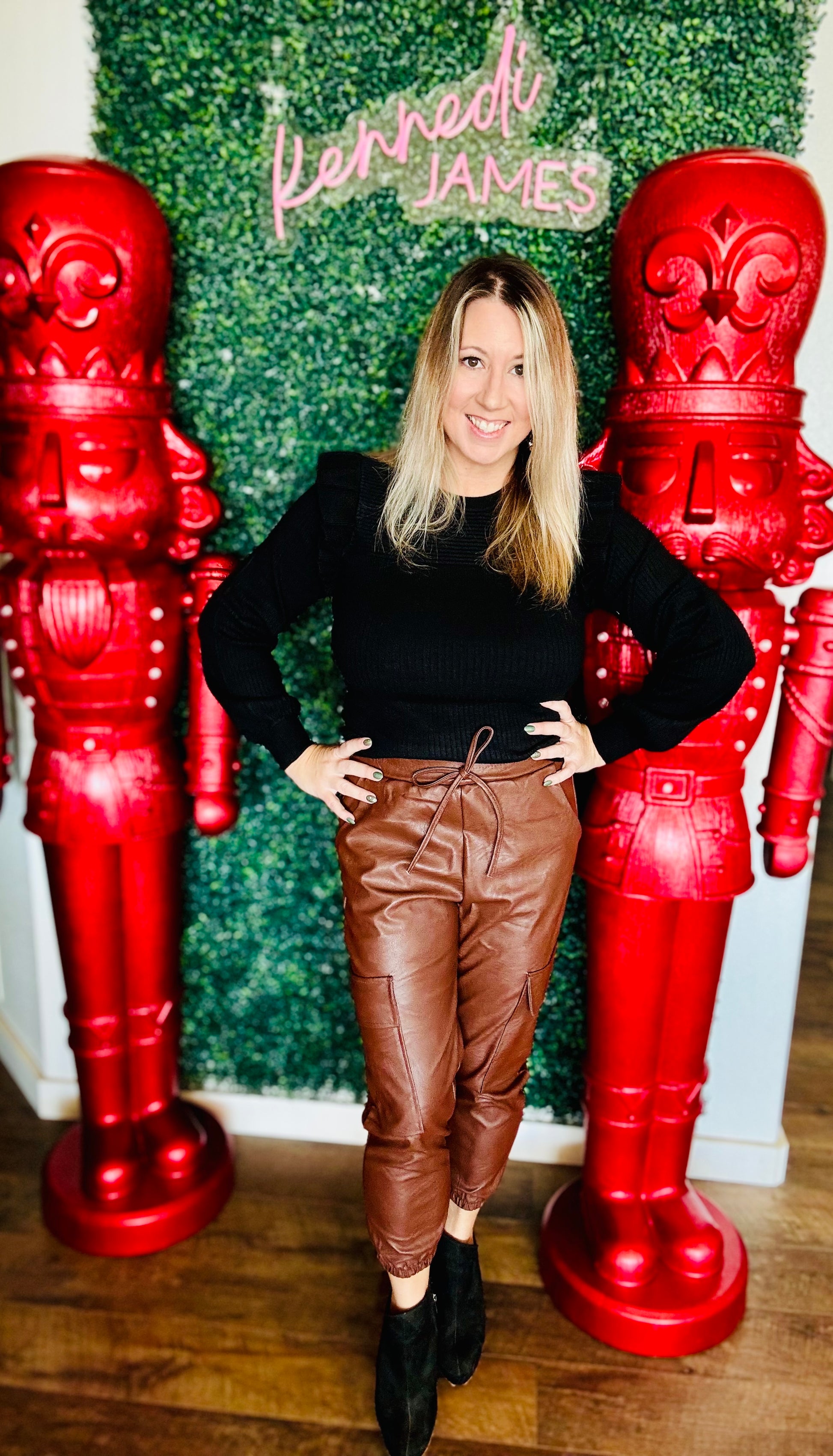 These Chocolate Bomb Joggers are a delicious blend of style and comfort! Made of faux leather and popping in a beautiful chocolate hue, these joggers feature an elastic waistband and cargo pockets for a look that's both cozy and chic.
