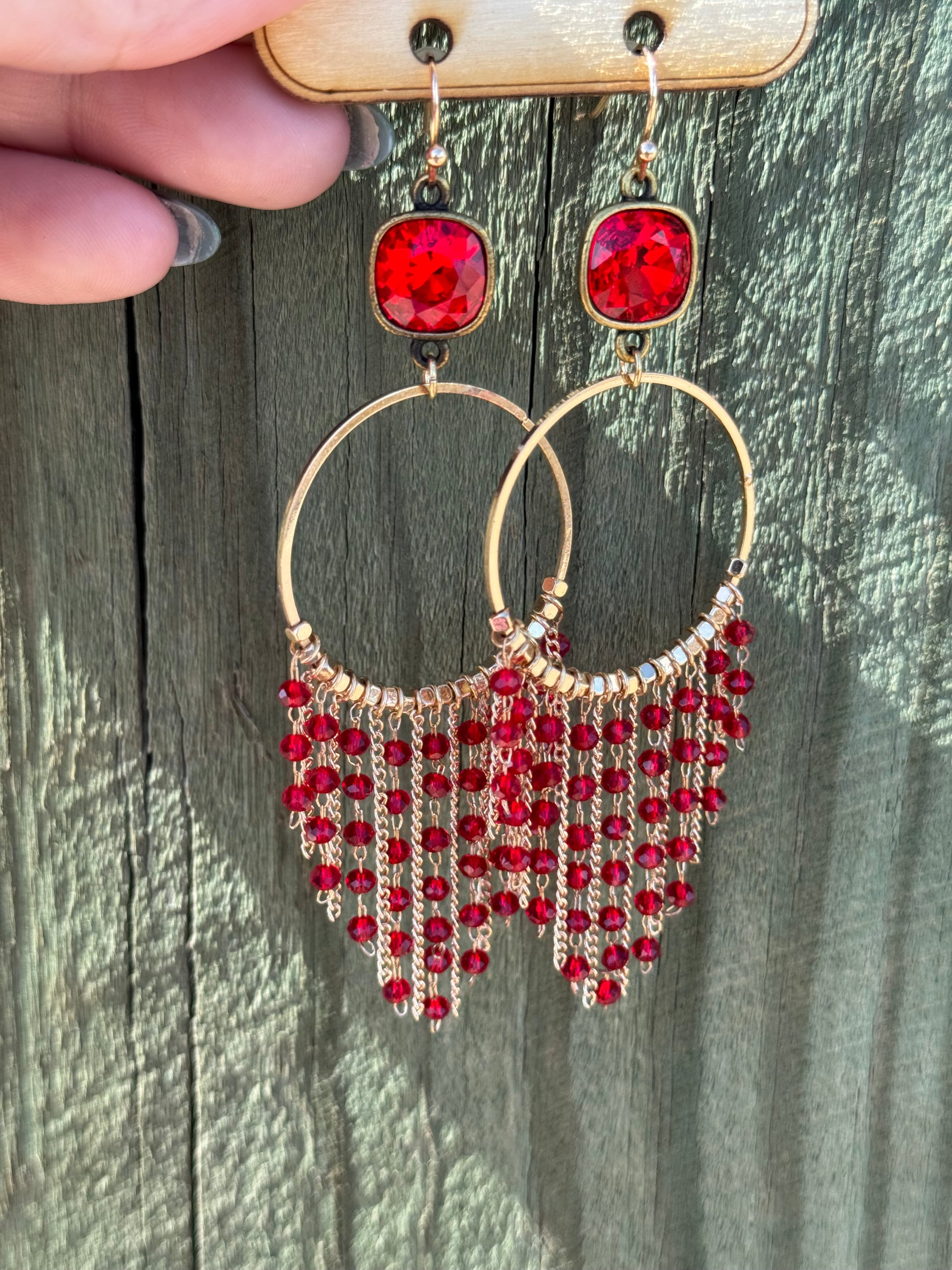 Make sure you're sizzling hot in the cutest way possible with these glamorous Firehouse Red Earrings! Stand out with the vibrant red crystals, golden circle earrings, and red bead fringe detail. This statement piece is the ultimate fun-sparker - guaranteed to turn heads and make you the talk of the town!