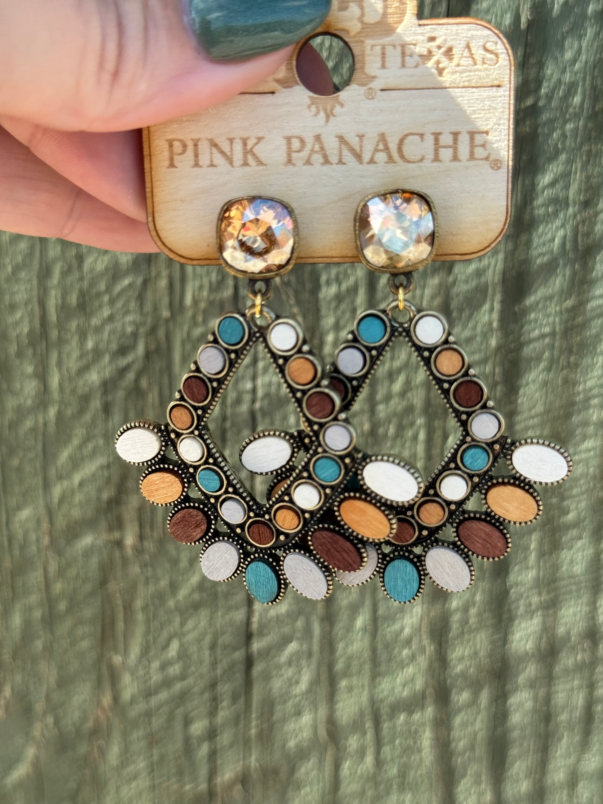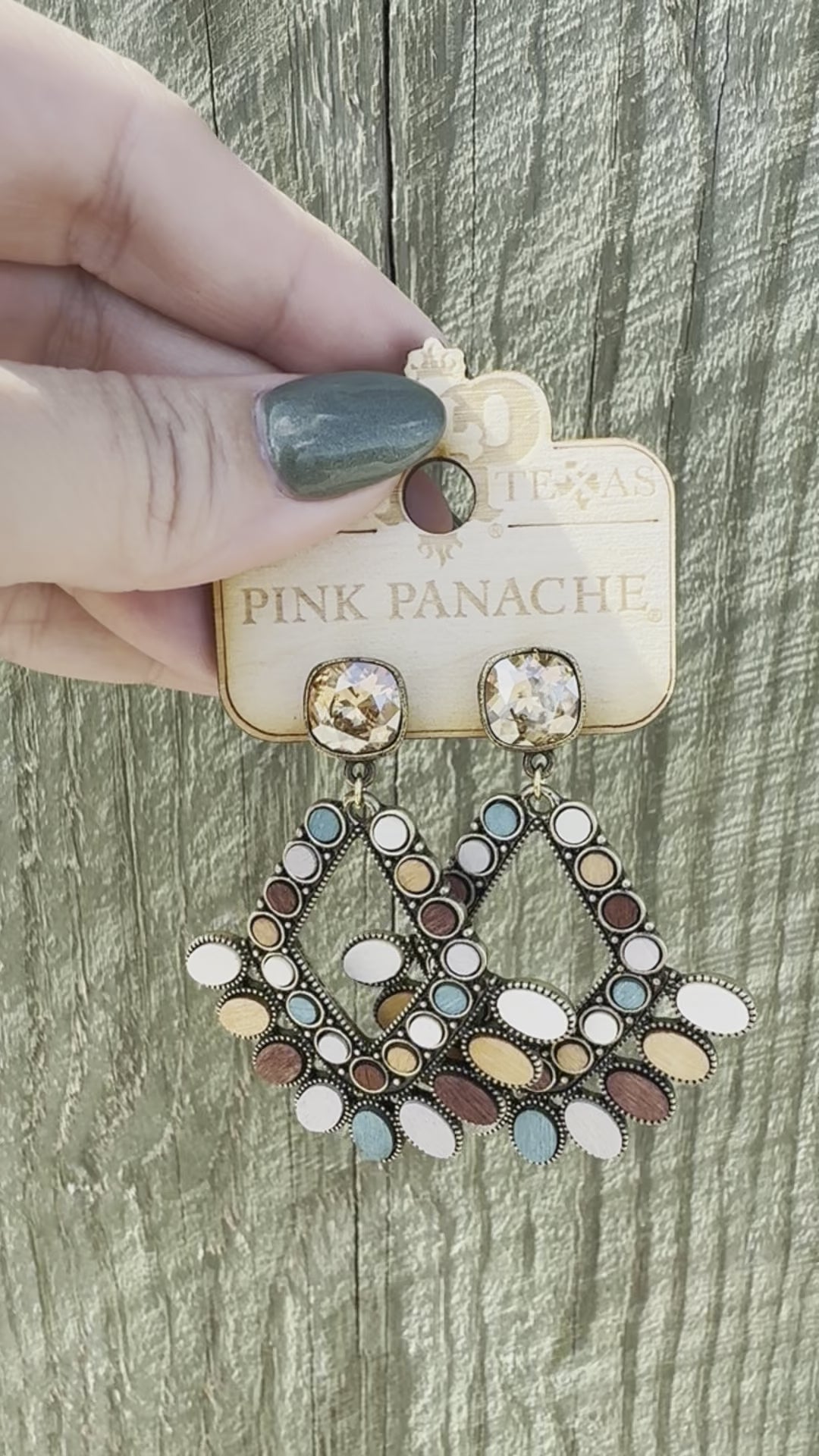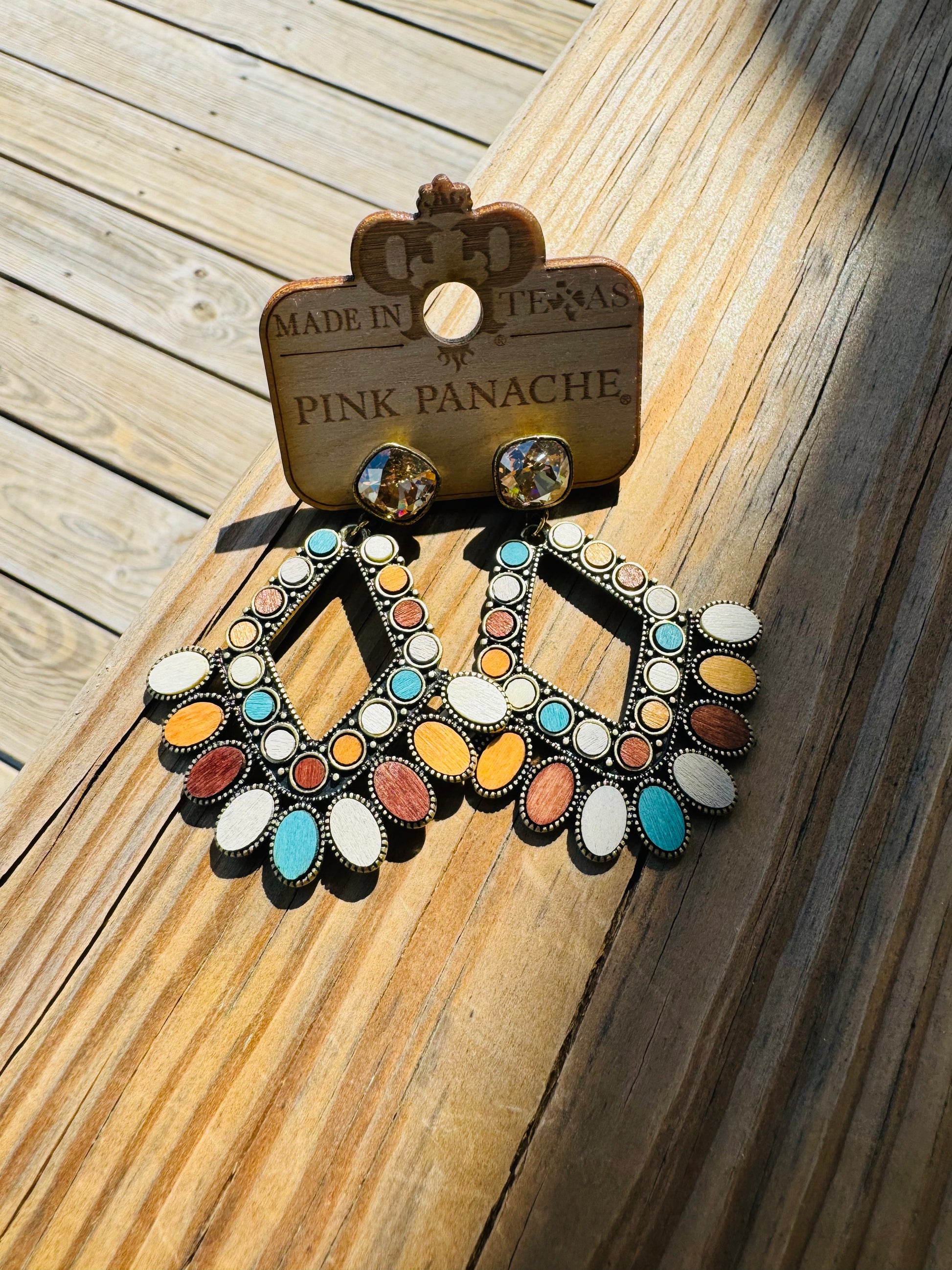 Experience a blend of golden opulence and vibrant color with these eye-catching Here I Go Again Chandelier Earrings. The stunning golden shadow cushion cut post earrings boasts a multicolor palette that evokes a western atmosphere, sure to make a memorable statement.