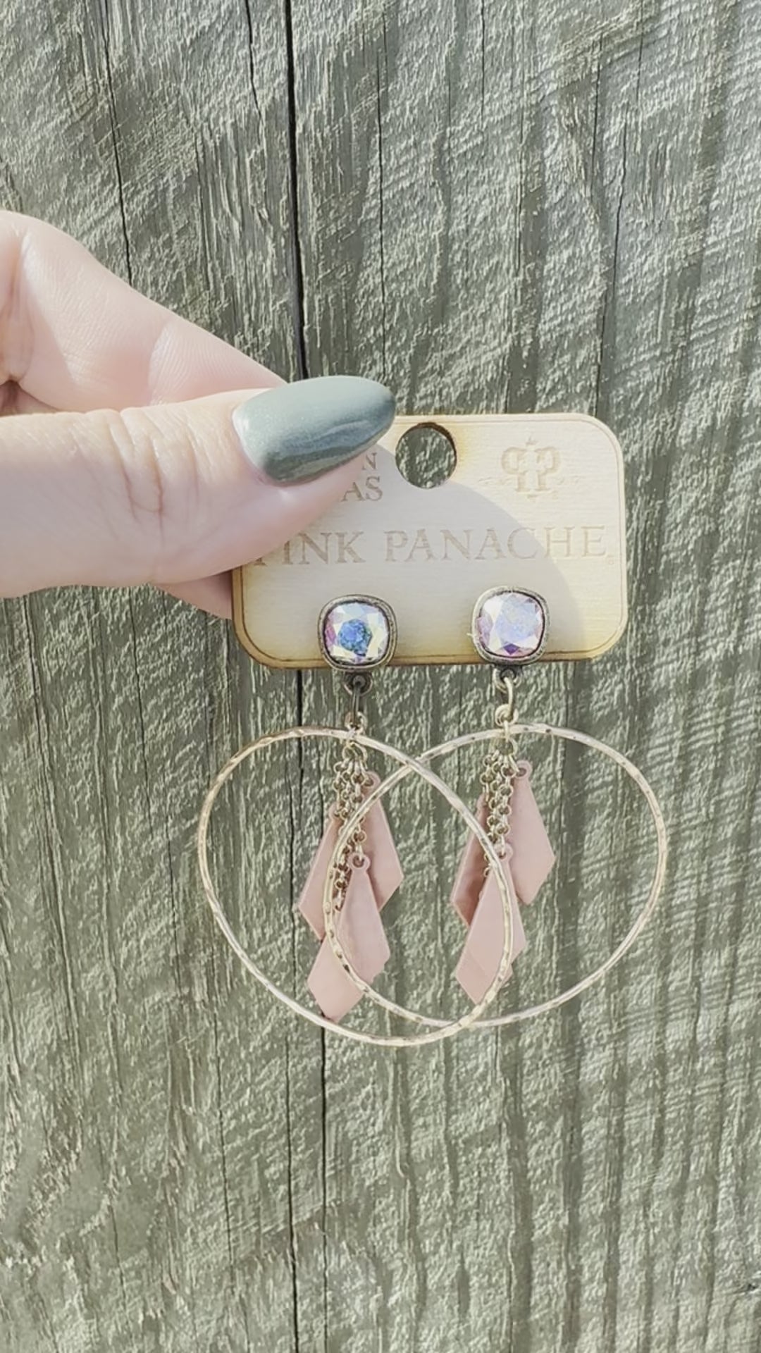 Turn heads with these Nobody's Fool earrings! Sporting a golden round pillow stud and a pink diamond-shaped pendant for added sparkle. Be the star of the show and dazzle like a gemstone!
