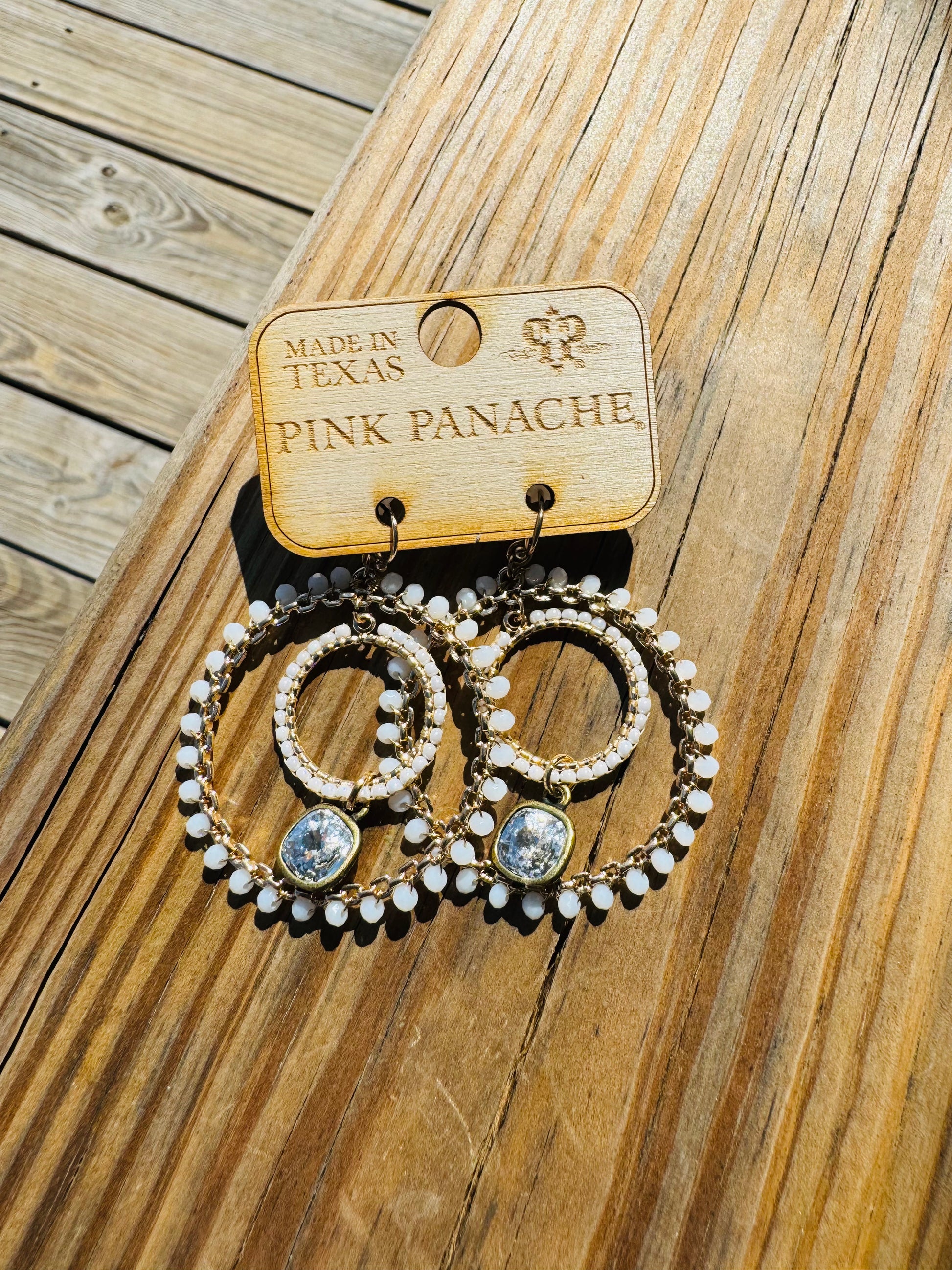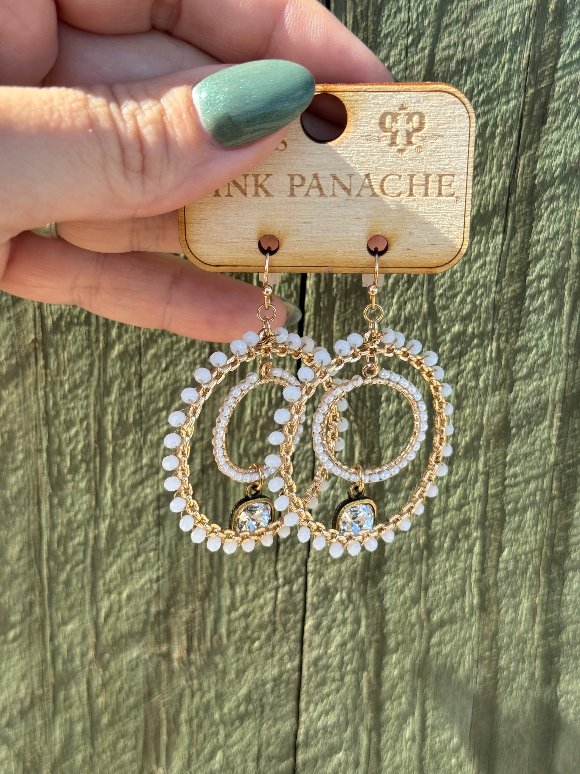- Beaded White Gold Circle Earrings